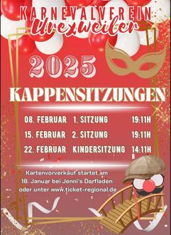 So finden die beiden Kappensitzungen an diesem (8. Februar) und am nächsten Samstag (15. Februar) statt. Am 22. Februar 2025 feiern wir gemeinsam unsere Kindersitzung.