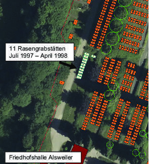 Für 11 Rasengrabstätten aus dem Belegungszeitraum von Juli 1997 bis April 1998 ist die Einebnung ab Mai 2023 vorgesehen.