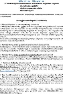 Wichtige Hinweise zu den Kanalgebührenbescheiden 2025 mit den möglichen Abgaben Schmutzwassergebühr Niederschlagswassergebühr Abwasserabgabe