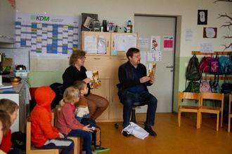 Im Rahmen einer Kinderbuch-Lesung besuchte Bürgermeister Volker Weber das kommunale Kinderhaus in Alsweiler. Mit im Gepäck hatte er das Buch „Spielplatz-Alarm in Marpingen - Nils, Ella und ihre Freunde reden mit“. Das Buch über die Gemeinde entstand auf Initiative des parteiübergreifenden Netzwerks junge Bürgermeisterinnen und Bürgermeister e.V., in dem sich Volker Weber seit Jahren engagiert. Das Buch soll schon den Kleinsten einen realistischen Einblick in das Berufsbild „Bürgermeisterin bzw. Bürgermeister“ geben und zeigen, wie zum Beispiel in einer Kommune Dinge beschlossen, Entscheidungen gefällt werden, da das Berufsbild des Bürgermeisters in vielen Kinderbüchern oder Kinderserien mit einigen Vorurteilen behaftet ist: relativ alt, korrupt oder arrogant. „Wir wollten den Kleinsten gerne mal zeigen, wie der Alltag des Bürgermeisters so aussehen kann, denn langweilig wird es bei uns nie. Oft sieht es bestimmt so aus, als ob nur die Erwachsenen etwas zu sagen hätten und alle Entscheidungen treffen, aber auch die Wünsche und Meinungen der Kinder sind mir als Bürgermeister sehr wichtig“, so Volker Weber.