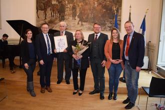 Der ehemalige Ortsvorsteher von Merchweiler Hans Werner Becker erhielt am Montag, den 13. März 2023 von Staatssekretär Torsten Lang aufgrund seiner kommunalpolitischen Aktivitäten die Freiherr-von-Stein-Medaille.