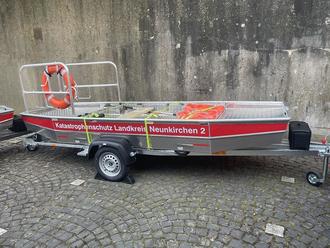 Zur sicheren Lagerung und zum Transport werden die Boote auf 750-Kilogramm-Anhängern verladen. Diese verfügen über eine höhenverstellbare Deichsel sowie Wechselkupplungen, sodass sie sowohl mit Mannschaftstransportwagen als auch mit LKWs gezogen werden können – auch hier ist ein zusätzlicher Führerschein nicht erforderlich.