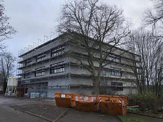 Hier schon mal ein großes Lob an Dietrich Maltz, das Architekturbüro Latz (Püttlingen) und an die beteiligten Firmen für ihr tolles Engagement aber auch ein ebenso großes Lob für die Geduld der Nachbarschaft, der Schülerinnen und Schüler und des Lehrerkollegiums in Bezug auf die Ausführung der Bauarbeiten...
