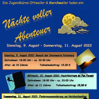 Anmeldungen zu den einzelnen Aktionen nehmen die Jugendbüros Ottweiler & Merchweiler ab dem 11. Juli 2022 entgegen: