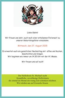 Wir beginnen wie immer um 14.30 Uhr mit der Hl. Messe.