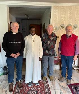 Pastor Martin Manyuka aus Tansania besucht derzeit das Saarland. Heute war er beim Arbeitskreis Merchweiler Heimatblätter zu Gast. Es war eine erstaunliche Situation "Martin bei Martins". Josef Martin der Vorsitzende des Arbeitskreises Merchweiler Heimatblätter begrüßte ihn auch im Namen seiner Frau Marie-Jeanne auf das Herzlichste. Schnell konnten kirchliche und historische Themen angesprochen werden. Auch Erfahrungen, die das Ehepaar aus ihrem Tansania Besuch 1988 gesammelt hatte, waren ein Thema an diesem Morgen. Martin Manyuka war in Begleitung von Frau Regina Louis, dort hatte Pastor Martin Manyuka gewohnt und den Mitgliedern des Arbeitskreises Merchweiler Heimatblätter Lothar Ries und Herbert Zewen...
