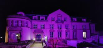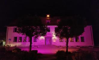 Als Zeichen der Unterstützung werden im Oktober die Fassaden der Rathäuser Merchweiler und Wemmetsweiler abends pink beleuchtet.