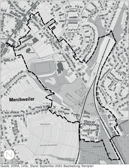 Nach Art. 1 Abs. 1 der Verwaltungsvereinbarung Städtebauförderung 2023 / 2024 ist das Fördergebiet räumlich abzugrenzen; die räumliche Abgrenzung kann gem. Art. 8 Abs. 2 als Sanierungsgebiet nach § 142 BauGB erfolgen. Dies ist von der Gemeinde Merchweiler beabsichtigt.