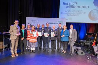 Am Mittwoch, dem 20. November 2024 erhielten zahlreiche Einsatzkräfte der Pfingstflutwasserkatastrophe durch die Saarländische Ministerpräsidentin Anke Rehlingen (SPD) und den saarländischen Innenminister Reinhold Jost (SPD) das Ehrenzeichen „Hochwasserhilfe Saarland 2024“ in der Illipse in Illingen überreicht.