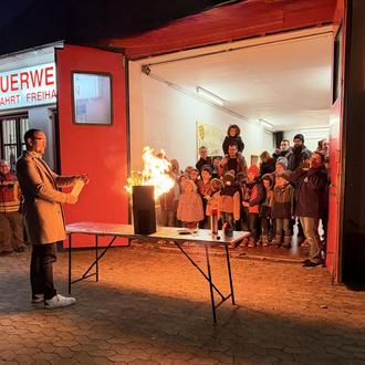 Die erste Geschichte handelte von den Gefahren eines Fettbrandes. Passend dazu wurde im Anschluss eine Fettexplosion demonstriert – eine gefährliche Reaktion, die entsteht, wenn versucht wird, brennendes Fett fälschlicherweise mit Wasser zu löschen.