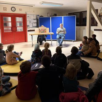 Bürgermeister Sebastian Maas liest den Kindern vor; Foto: Kerstin Schaack