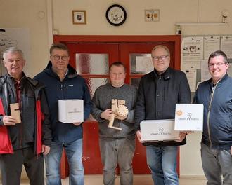 Lars Johänntgen, Leiter der Kinderfeuerwehr, nahm die Spende dankend vom Vorsitzenden des Ortsvereins, Albin Hanstein, entgegen.