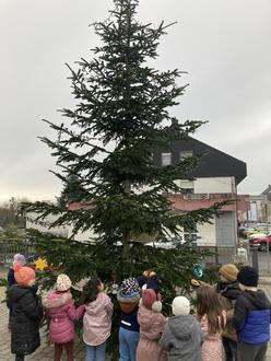 Dort haben sich die Vorschulkinder unseres kath. Kindergartens gemeinsam mit ihrer Gruppenleiterin Heike Pache und der Kindergartenleiterin Steffi Jacob-Schmitt ans Werk gemacht und mit selbst hergestelltem Schmuck den Baum verschönert.
