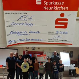 Gemeinsam mit dem Team der Feuerhaie nahmen die anwesenden Kinder die Spende stolz entgegen. Solche Gesten zeigen eindrucksvoll, wie wichtig Zusammenhalt und Unterstützung in unserer Gemeinschaft sind, ganz im Sinne des heiligen Sankt Martin.