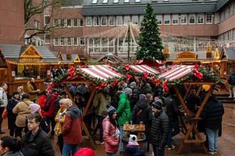 Zur traditionellen „Heilig-Morgen-Party“ im Rathaus-Innenhof strömten trotz des regnerischen Wetters zahlreiche Gäste - der „Luckauer Platz“, so die offizielle Bezeichnung der Örtlichkeit, füllte sich schnell mit fröhlichen Menschen in bunten Weihnachtsoutfits.