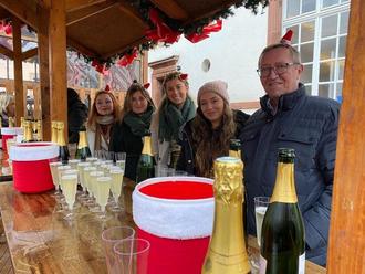 Bei Live-Musik von „Nino meets Angelo“ schenkten Viezkönigin Jule I. und ihre Prinzessinnen Jasmin und Vanessa mit Peter Schill vom „Verein für Handel und Gewerbe“ und Schlagersängerin Jennifer Junker Sekt für den guten Zweck aus. Die Spenden kamen dabei wieder der Veranstaltung „Heiligabend allein, das muss nicht sein“ der Evangelischen Kirchengemeinde zugute, die bereits zum 29. Mal von Frank Paqué und seinen fleißigen Helfern durchgeführt wurde.