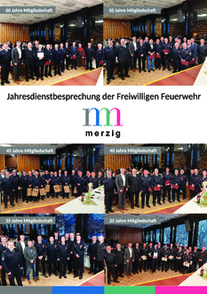 Anschließend übernahm Gerhard Sauer vom Landesfeuerwehrverband die Ehrungen für 40-, 50-, 60- und sogar 70-jährige Mitgliedschaft in der Feuerwehr. Er unterstrich die Bedeutung der Freiwilligen Feuerwehr mit der Tatsache, dass viele Veranstaltungen in den Städten und Gemeinden von der Feuerwehr mitgetragen würden. Außerdem bedankte er sich im Namen des Landesfeuerwehrverbandes bei den Kameraden der Feuerwehr Merzig für die vielen geleisteten Stunden bei Einsätzen der Feuerwehr. Er bedankte sich ebenso für die Arbeit in der Ausbildung und in der Jugendarbeit.