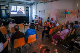 Im Anschluss an die Vernissage begrüßte die Samba-Gruppe der Lebenshilfe Interessierte im Jugendhaus Merzig, wo der Film „Mensch sein“ erstmals im Landkreis Merzig-Wadern vorgestellt wurde. In diesem von der „Aktion Mensch“ geförderten Film werden drei Menschen mit Behinderung in ihrem alltäglichen Leben begleitet. Eine Hauptrolle spielt dabei Luca aus Brotdorf, der natürlich mit besonderem Applaus begrüßt wurde.