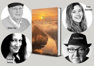 Günter Gna, Paula Kaufmann, Gerhard Köhn und Beatrice Sonntag stellen die Anthologie „Saarschleifen“ vor.