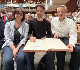 Nach dem offiziellen Teil trug sich Fußballnationalspieler Kevin Trapp noch in das Goldene Buch der Kreisstadt Merzig ein.