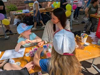 Oberbürgermeister Marcus Hoffeld ließ es sich trotz engem Zeitplan nicht nehmen, das Fest zu besuchen und mit den Anwohnerinnen und Anwohnern und den Kooperationspartnern ins Gespräch zu kommen. Er freute sich über ein gelungenes Fest und wie gut die einzelnen Einrichtungen in Merzig für Familien zusammenwirken.