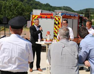 Am vergangenen Freitag war der saarländische Innenminister Reinhold Jost zu Besuch im Merziger Stadtteil Brotdorf. Grund war die Übergabe eines Zuwendungsbescheides an Bürgermeister Marcus Hoffeld in Höhe von 1.000.000€ für den Neubau des dort benötigten Feuerwehrgerätehauses auf dem Dorfplatz.