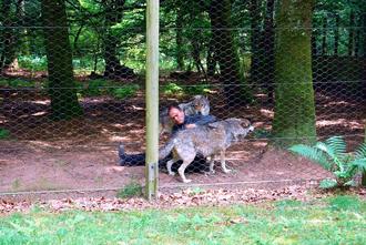 Als Souvenir erhielten die Mitglieder des Förderkreises etwas Fell der Wölfe, die sich momentan im Fellwechsel befinden. Eindrucksvoll zeigten Michael Schönberger und Tatjana Schneider ihre Verbindungen mit den Tieren und führten sogar eine Fütterung der Jungwölfe vor.