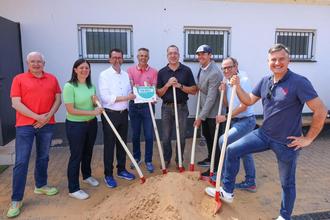 Nach der Zuwendungsübergabe erfolgte ein gemeinsamer Spatenstich durch Minister Reinhold Jost, Oberbürgermeister Marcus Hoffeld, Bürgermeister Christian Bies, den Kreisbeigeordneten Frank Wagner, die Landtagsabgeordnete Martina Holzner, Ortsvorsteher Alexander Boos, den Vorsitzenden der CDU-Stadtratsfraktion Jürgen Auweiler und Stadtratsmitglied Dr. Detlef Nikolaus Hans.