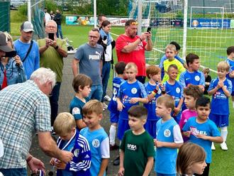 Bei den Kleinsten, der G- und F-Jugend, waren die Ergebnisse nicht das Wichtigste. Hier gab es ausschließlich Gewinner. Darum hatte Arno Heinz mit seinen Helfern, vor allem Jugendleiter Tom Rosenfeld alle Hände voll zu tun, als er alle teilnehmenden Kinder mit einer Medaille ehrte. Die Stadtmeister Pokale sicherten sich der SV Merchingen bei der G-Jugend und die SF Bietzen-Harlingen bei der F-Jugend.