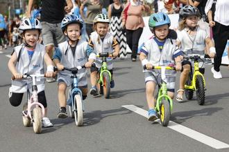 Laufradrennen (2 - 5 Jahre, 15:20 - 15:30 Uhr): Kids zwischen zwei und fünf Jahren haben die Möglichkeit, sich beim Laufradrennen auf den letzten 100 m der Profistrecke zu beweisen. Der Spaß steht im Vordergrund. Als Höhepunkt wird der offizielle Zielbogen durchfahren, im Ziel wartet auf alle Kids eine Überraschung. Weitere Informationen und die Anmeldung (bis zum 23.8.) via https://www.kinderjoyofmoving.de/mini-tour