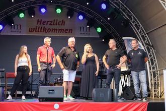 Nach dem Auftritt von Jennifer Junker, die im Anschluss direkt die Reise nach Rust antrat, wo sie sich am Sonntag bei „Immer wieder sonntags“ live aus dem „Europapark“ wieder dem „Newcomer-Wettbewerb“ stellte und die nächste Runde erreichte, begrüßten Oberbürgermeister Marcus Hoffeld, Andrea Zimmer, die Geschäftsführerin des Kreiskulturzentrums Villa Fuchs, Frank Jakobs, der Vorstandsvorsitzende der Sparkasse Merzig-Wadern, Radio Saarschleifenland-Moderator Ulli Soumann und Johannes Strauch vom „Altstadtförderverein“ die zahlreichen Gäste.