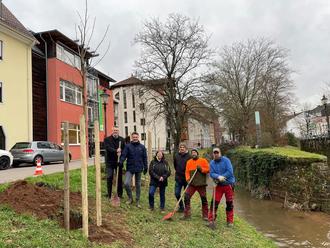 Das Förderprojekt soll auch die Bevölkerung für den Erhalt und die Neupflanzung von Bäumen sensibilisieren. So wurden in der vergangenen Woche drei Bäume am Seffersbach gepflanzt.