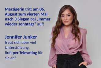 Zeit zum Ausruhen bleibt der Jurastudentin allerdings nicht. Bereits am Sonntag wird Jennifer Junker erneut auf der großen Bühne von „Immer wieder sonntags“ stehen und möchte wieder eine Runde weiterkommen. Daher hofft die Sängerin erneut Unterstützung aus der Merziger Bevölkerung zu erhalten. Zu sehen sein wird die Sendung „Immer wieder sonntags“ ab 10:00 Uhr in der ARD.