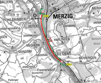 Während der Maßnahme wird der Radweg in diesem Bereich vollständig gesperrt. Die Umleitung erfolgt auf der anderen Saarseite, mit ausgeschilderten Überquerungsmöglichkeiten in Merzig und auf Höhe Fremersdorf. Zur sicheren Querung der Fahrbahn für Fußgänger und Radfahrer wird eine mobile Ampelanlage an der L 174 (Höhe Bahnhof Fremersdorf) eingerichtet.