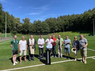 Auch Rainer Biehl, Vorsitzender des Westsaarkreises, im Saarländischen Fußballverband, begeistert nach seinen Worten die Sanierung des Kunstrasens. Dadurch würden Trainings- und Wettkampfbedingungen verbessert. Bevor die Partie der Landesliga zwischen der Heimelf und den Gästen aus Wahlen-Niederlosheim angepfiffen wurde, segnete Pfarrer Csaba Szocs den Platz ein.