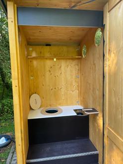 So war es in der bislang regelmäßig nötig, dass insbesondere für Feierlichkeiten eine Miettoilette organisiert werden musste, was neben vielen anderen auch den Nachteil hat, dass es sehr kostspielig ist. Um die Situation diesbezüglich in einem vertretbaren und der Örtlichkeit angemessenen Rahmen zu verbessern, beschloss der Ortsrat Menningen im Herbst 2022 die Beantragung einer Trockentoilette bei der Kreisstadt Merzig über das Budget zur „Stärkung der Stadtteile“. Nach der Bewilligung im Frühjahr 2023, wurde in enger Abstimmung zwischen dem Ortsrat und dem Baubetriebshof der Kreisstadt Merzig, ein passendes Toilettensystem bestellt und nun installiert. Die notwendigen Erdarbeiten erledigte der Baubetriebshof, die Toilettenkabine selbst wurde von Mitgliedern des Menninger Ortsrats aufgebaut und für die Nutzung vorbereitet.