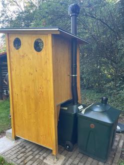 Eine Trockentoilette funktioniert gänzlich ohne die Zugabe von Wasser nach dem Kompostierungsprinzip. Nach dem Toilettengang gibt der Nutzer lediglich etwas von dem bereitgestellten Einstreumaterial in den Sammelbehälter und verschließt den Toilettendeckel. Der Behälter ist so konzipiert, dass Flüssigstoffe über ein Sieb abgeführt und in einem separaten Kanister bis zur Entleerung gelagert werden. Ein Kaminsystem sorgt für eine Luftzirkulation im Behälter, wodurch insbesondere auch die Austrocknung der Ausscheidungen unterstützt sowie die Geruchsbelästigung in der Toilettenkabine minimiert wird. Ist ein gewisser Füllstand im Sammelbehälter erreicht, wird dieser durch einen Ersatzbehälter ausgetauscht und zur Nachkompostierung eingelagert. Das vollständig durchkompostierte Material kann schließlich mittels einer Schaufel entnommen werden.