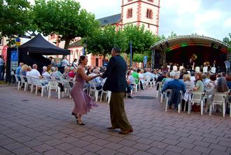 Mit Klamauk und einer selbstironischen Bühnenshow, gepaart mit mitreißendem Swing und authentischen Outfits, erschufen Klaus Huck und sein Tanzorchester am Mittwochabend die unverkennbare Stimmung einer wilden Party in den verruchten „Roaring Twenties“. Das Publikum begab sich mit bekannten deutschen Swing-Hits wie „Heute Nacht oder nie“ als Motto des Abends auf eine musikalische Zeitreise, bei der sie zum Genießen und sich Bespaßen lassen eingeladen waren. Nicht nur die Musik fand einen großen Anklang bei den Gästen. Auch die humorvollen Anekdoten zu jedem Song, Musiker-Witze, Poesie und die ein oder andere überraschende Einlage der Show sorgten für ein einzigartiges Erlebnis auf dem Kirchplatz. Da blieb kaum ein Fuß still, denn Tanzen war ausdrücklich erwünscht!