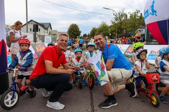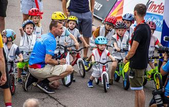 Begeisterung bei den Zuschauern entfachte auch das Laufradrennen über die letzten 100 m auf der Originalstrecke, bei dem Kinder zwischen zwei und fünf Jahren zeigten, was sie auf dem Laufrad schon können - das absolute Highlight der „kinder Joy of Moving mini tour“.