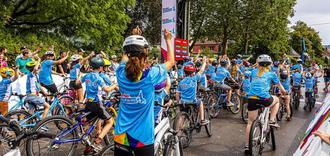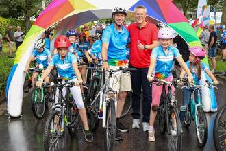 Bevor die Profis bei der 1. Etappe der Deutschland Tour in Merzig über die Ziellinie fuhren, begeisterte die „kinder Joy of Moving mini tour“ zahlreiche Kinder und Jugendliche für das Radfahren. kinder Joy of Moving-Botschafter und Rad-Legende Jens Voigt war als Experte vor Ort und gab den Startschuss zur Bike Parade. Sie bot allen Kindern zwischen sechs und zwölf Jahren die einzigartige Chance, gemeinsam mit anderen Kids auf der Strecke zu fahren, auf der wenig später ihre Idole unterwegs waren.