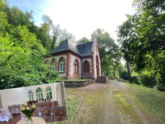 Das Haus Waldfrieden wurde zwischen 1897 und 1900 als Kapelle erbaut und liegt in einem idyllischen Wald am Münchberg, dem Waldstück hinter dem Gelände der SHG-Klinik. Abseits des Trubels bietet es eine perfekte Örtlichkeit für eine intime und stilvolle Zeremonie im Rahmen der standesamtlichen Trauung.