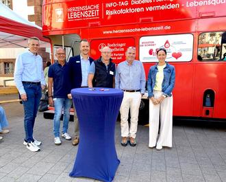 In der vergangenen Woche hatte der Informationstag zur Vorbeugung vor Herz-Kreislauf-Erkrankungen und Diabetes am Alten Rathaus in der Fußgängerzone in Merzig stattgefunden. In Zusammenarbeit mit der SHG-Klinik Merzig und mit Unterstützung der Stadt hatten Besucher und Passanten die Möglichkeit, sich am und im roten London-Bus kostenlos beraten und untersuchen zu lassen.