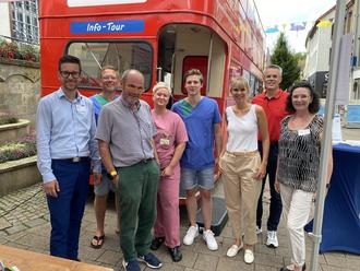Der Info-Bus der „Herzenssache Lebenszeit“ ist bundesweit im Auftrag von Gesundheitsorganisationen und des Pharmaunternehmens Boehringer Ingelheim unterwegs.