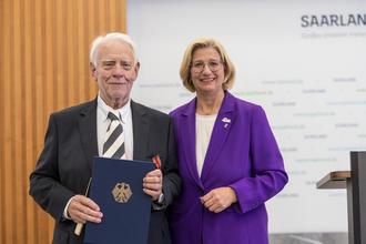 Ministerpräsidentin Anke Rehlinger übergibt Bundesverdienstkreuz an Winfried Burger