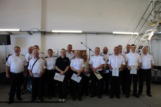 Da der traditionelle Floriansempfang des Löschbezirks Brotdorf Anfang Mai nicht stattfinden konnte, beförderte Marcus Hoffeld nun in diesem Rahmen aktive Feuerwehrfrauen und -männer: Jule Baltes zur Feuerwehrfrau-Anwärterin, Marie Enzweiler zur Feuerwehrfrau, Mika Voss zum Oberfeuerwehrmann, Maximilian Schmidt zum Löschmeister und Alexander Vancik zum Oberlöschmeister. Bereits am Vortag wurden Tina Hoen (seit April 2023) und Kevin Heinz (seit April 2015) für ihr Engagement für die Nachwuchsarbeit im Löschbezirk Brotdorf mit der silbernen Ehrennadel der saarländischen Jugendfeuerwehr ausgezeichnet.