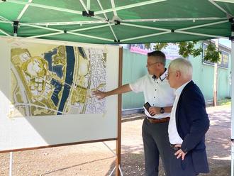 Im Rahmen einer Auftaktveranstaltung wurde die Baumaßnahme des „Sport- und Freizeitparks“ vorgestellt. An der Baustellenbegehung nahmen der Wirtschaftsminister Jürgen Barke, Abteilungsleiter Wirtschafts- und Strukturpolitik Dr. Anselm Römer, Oberbürgermeister Marcus Hoffeld, die Landrätin Daniela Schlegel-Friedrich sowie Mitglieder des Landtags, des Stadtrats und der Ortsräte teil.