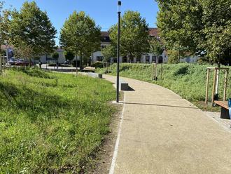 Die zwischen der KiTa St. Josef und der integrativen Kindertagesstätte „Schneckenhaus“ gelegene innerstädtische Grünfläche ist zu einem neuen Ort der Begegnung mit mehr Aufenthaltsqualität, Biodiversität und Regenwassermanagement durch die Kreisstadt Merzig umgestaltet worden.