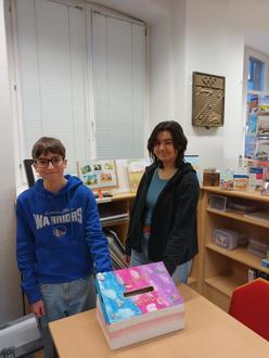 Der derzeitige Schülerpraktikant Ben Hevemeyer und die Schülerpraktikantin Natalia Eswara Moorthy, beide vom Gymnasium am Stefansberg, hatten jüngst die Aufgabe die Gewinnerinnen und Gewinner der Weihnachtsaktion der Stadtbibliothek zu ermitteln.