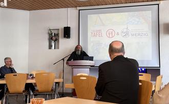 Unter den Gästen, die sich im evangelischen Gemeindezentrum eingefunden hatten, begrüßte Pfarrer Winkler auch zahlreiche Ehrenamtler, die sich teilweise bereits seit der ersten Stunde für die „Tafel Merzig“ engagieren. Auch Mitwirkende der „AG Altenhilfe Merzig“ e. V., die vormals zehn Jahre die Tafel betreuten, hieß der Geistliche herzlich willkommen. Sein Gruß galt weiterhin den Vertretern aus der Politik, Oberbürgermeister Marcus Hoffeld, Landrätin Daniela Schlegel-Friedrich und Ortsvorsteher Alexander Boos, sowie den örtlichen Betrieben, die Lebensmittel spenden, die nicht mehr verkauft werden können, und der Landesvorsitzenden der „Tafel Rheinland-Pfalz/Saarland“, Sabine Altmeyer-Baumann.