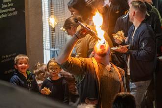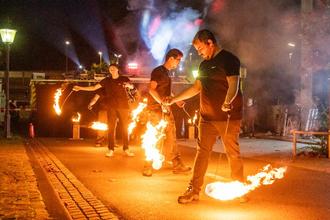 Den mystischen Abschluss bildet gegen 21 Uhr eine Feuershow, die wieder wie in den Anfängen der Mondschein-Märkte am Seffersbach stattfindet. Tanzende Fackeln, Feuerspucken und wild kreisende, brennende Feuer-Pois verbinden sich mit geheimnisvoller Musik und tauchen den Platz in ein faszinierendes Licht.